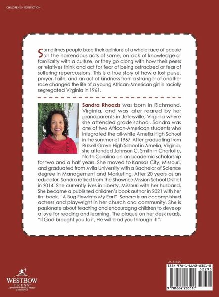 Sometimes people base their opinions of a whole race of people on the horrendous acts of some, on lack of knowledge or familiarity with a culture, or they go along with how their peers or relatives think and act for fear of being ostracized or fear of suffering repercussions. This is a true story of how a lost purse, prayer, faith, and an act of kindness from a stranger of another race changed the life of a young African-American girl in racially segregated Virginia in 1961.