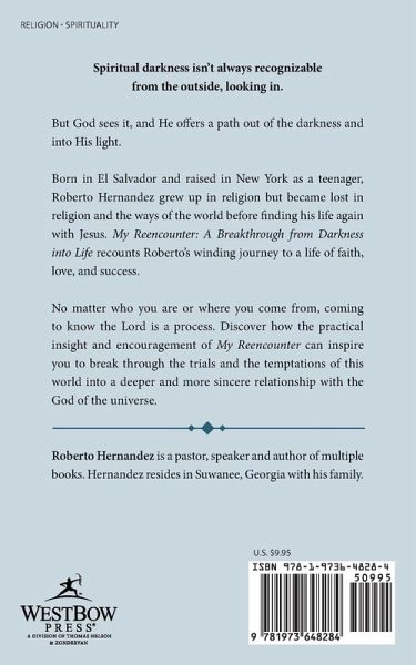 Spiritual darkness isn't always recognizable from the outside, looking in. But God sees it, and He offers a path out of the darkness and into His light. Born in El Salvador and raised in New York as a teenager, Roberto Hernandez grew up in religion but became lost in religion and the ways of the world before finding his life again with Jesus. My Reencounter: A Breakthrough from Darkness into Life recounts Roberto's winding journey to a life of faith, love, and success. No matter who you are or where you come from, coming to know the Lord is a process. Discover how the practical insight and encouragement of My Reencounter can inspire you to break through the trials and the temptations of this world into a deeper and more sincere relationship with the God of the universe.