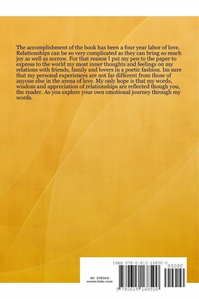 My Relationship With Poetry is a 107 page book that is set up in a story book fashion. This book takes the reader on an intimate as well as an emotional journey through the author's relations with friends, family, and lovers. If read from front to back such as a novel. this book of poetry will unfold a beautiful story in a way poetry has never been experienced.