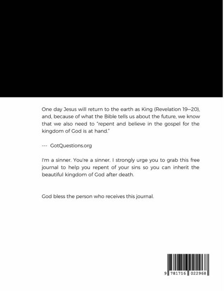 A journal to help you repent so you're name can be written in the Lamb's Book Of Life.
