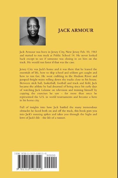 Jack Armour was born in Jersey City, New Jersey Feb. 10, 1961 and started to run track at Public School 14. He never looked back except to see if someone was closing in on him on the track. He would run faster if that was the case. Jack became the athlete he had dreamed of being since his early days of watching Jack Lalanne on television and training himself by copying the exercises he saw - for more than once he represented the U.S. in world tournaments and became a hero Jersey City, New Jersey, his home city. Full of insights into how Jack battled the many tremendous obstacles he faced both on and off the track, this book puts you into Jack's running spikes and takes you through the highs and lows of Jack's life - the life of a runner.