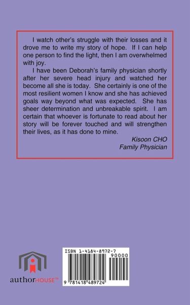 I watch other's struggle with their losses and it drove me to write my story of hope. If I can help one person to find the light, then I am overwhelmed with joy. I have been Deborah's family physician shortly after her severe head injury and watched her become all she is today. She certainly is one of the most resilient women I know and she has achieved goals way beyond what was expected. She has sheer determination and unbreakable spirit. I am certain that whoever is fortunate to read about her story will be forever touched and will strengthen their lives, as it has done to mine. Kisoon CHOFamily Physician