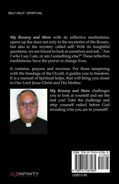 My Rosary and more with its reflective meditations, opens up the door not only to the mysteries of the Rosary, but also to the mystery called self! With its insightful questions, we are forced to look at ourselves and ask , "Am I who I say I am, or am I something else?" These reflective meditations, have the power to change lives. It contains, prayers and novenas. For those tampering with the bondage of the Occult, it guides you to freedom. It is a manual of Spiritual helps, that will bring you closer to Our Lord Jesus Christ and His Mother