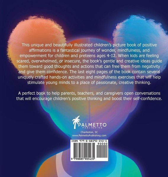 This unique and beautifully illustrated children's picture book of positive affirmations is a fantastical journey of wonder, mindfulness, and empowerment for children and preteens ages 4-12. When kids are feeling scared, overwhelmed, or insecure, the book's gentle and creative ideas guide them toward good thoughts and actions that can free them from negativity and give them confidence. The last eight pages of the book contain several uniquely crafted hands-on activities and mindfulness exercises that will help stimulate young minds to a place of passionate, creative thinking.