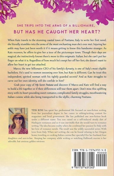 She trips into the arms of a billionaire, but has he caught her heart? When Kate travels to the stunning coastal town of Positano, Italy to write her first novel, she literally stumbles into the arms of the most enchanting man she's ever met. Injuring her ankle may have just been worth it if it means getting to know this handsome stranger. As Kate recovers, he offers to give her a tour of the picturesque town. Though their days are magical, she instinctively knows there's more to this enigmatic Italian, but she can't put her finger on what it is. Regardless of how much he's swept her off her feet, she doesn't want to allow her heart to get too attached. Marco, the new billionaire CEO of his family's dynasty, is one of Italy's most eligible bachelors. He's used to women swooning over him, but Kate is different. Can he trust this independent, spirited woman with his tightly guarded secrets? And as Kate struggles to carve out her own identity, will she confide in him? Grab your copy of My Secret Positano and discover if Marco and Kate will find a way to build a life together or if their differences will tear them apart. Don't miss this uplifting story with its heart-pounding sweet romance, complicated family struggles, mouthwatering Italian cuisine while also being transported to the idyllic, charming Positano.