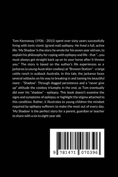 Tom Kennaway spent over 60 years successfully living with his tonic-clonic (grand mal) epilepsy. 'My Shadow' is the entertaining story he wrote for his son, to explain his philosophy for coping with epilepsy and life - that "...you must always get straight back up on to your horse after it throws you." Based on the author's own experience as a cowboy in the Australian outback, it draws a comparison between the mastering of epilepsy and the breaking in of a horse. This book doesn't examine the signs and symptoms of epilepsy or highlight the stigma attached to this condition. Rather, it illustrates the mindset required by epilepsy sufferers, to thrive and get the most out of every day. 'My Shadow' is the perfect story for a parent, guardian or teacher to share with a six to eight year old. Reader interest and understanding is further enhanced by the vibrant black and white illustrations that accompany the text.