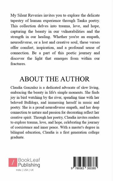 My Silent Reveries offers a glance into the world of feeling, where one can heal their inner child through the power of unwavering love and glimmers of hope, while accepting that trauma can coexist with happiness and peace. This collection of Tanka poetry delves into the light that emerges from within our fractures. In a world like today, it's okay to feel a little broken, because aren't we all a little broken?