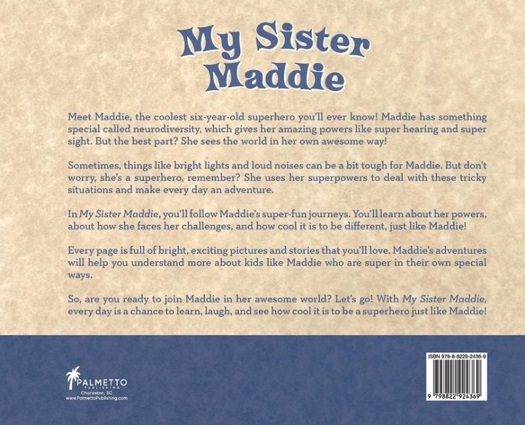 Meet Maddie, the coolest six-year-old superhero you'll ever know! Maddie has something special called neurodiversity, which gives her amazing powers like super hearing and super sight. But the best part? She sees the world in her own awesome way! Sometimes, things like bright lights and loud noises can be a bit tough for Maddie. But don't worry, she's a superhero, remember? She uses her superpowers to deal with these tricky situations and make every day an adventure. In My Sister Maddie, you'll follow Maddie's super-fun journeys. You'll learn about her powers, about how she faces her challenges, and how cool it is to be different, just like Maddie! Every page is full of bright, exciting pictures and stories that you'll love. Maddie's adventures will help you understand more about kids like Maddie who are super in their own special ways. So, are you ready to join Maddie in her awesome world? Let's go! With My Sister Maddie, every day is a chance to learn, laugh, and see how cool it is to be a superhero just like Maddie!