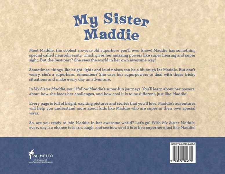 Meet Maddie, the coolest six-year-old superhero you'll ever know! Maddie has something special called neurodiversity, which gives her amazing powers like super hearing and super sight. But the best part? She sees the world in her own awesome way! Sometimes, things like bright lights and loud noises can be a bit tough for Maddie. But don't worry, she's a superhero, remember? She uses her superpowers to deal with these tricky situations and make every day an adventure. In My Sister Maddie, you'll follow Maddie's super-fun journeys. You'll learn about her powers, about how she faces her challenges, and how cool it is to be different, just like Maddie! Every page is full of bright, exciting pictures and stories that you'll love. Maddie's adventures will help you understand more about kids like Maddie who are super in their own special ways. So, are you ready to join Maddie in her awesome world? Let's go! With My Sister Maddie, every day is a chance to learn, laugh, and see how cool it is to be a superhero just like Maddie!