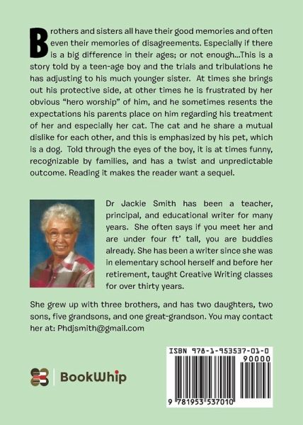 Brothers and sisters all have their good memories and often even their memories of disagreements. Especially if there is a big difference in their ages; or not enough...This is a story told by a teen-age boy and the trials and tribulations he has adjusting to his much younger sister. At times she brings out his protective side, at other times he is frustrated by her obvious "hero worship" of him, and he sometimes resents the expectations his parents place on him regarding his treatment of her and especially her cat. The cat and he share a mutual dislike for each other, and this is emphasized by his pet, which is a dog. Told through the eyes of the boy, it is at times funny, recognizable by families, and has a twist and unpredictable outcome. Reading it makes the reader want a sequel.