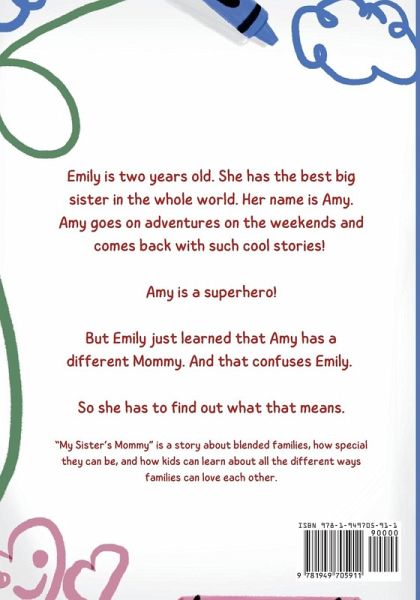 Emily is two years old. She has the best big sister in the whole world. Her name is Amy. Amy goes on adventures on the weekends and comes back with such cool stories! Amy is a superhero! But Emily just learned that Amy has a different Mommy. And that confuses Emily. So she has to find out what that means. "My Sister's Mommy" is a story about blended families, how special they can be, and how kids can learn about all the different ways families can love each other.