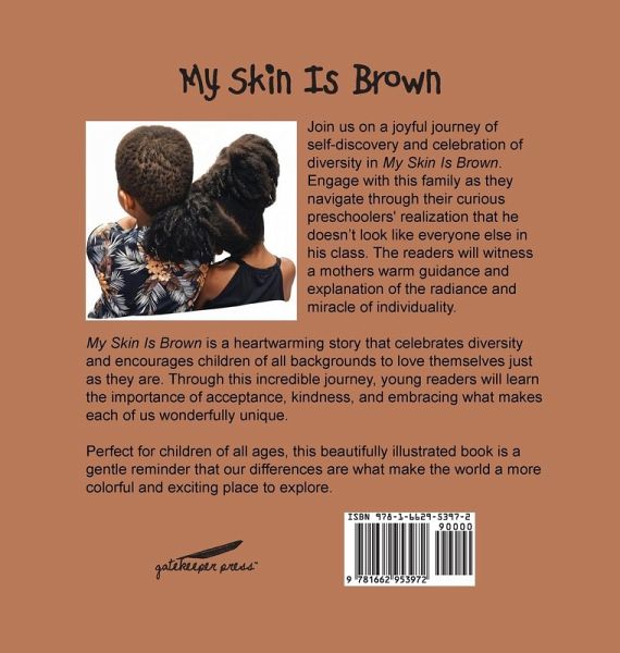 Join us on a joyful journey of self-discovery and celebration of diversity in My Skin Is Brown. Engage with this family as they navigate through their curious preschoolers' realization that he doesn't look like everyone else in his class. The readers will witness a mothers warm guidance and explanation of the radiance and miracle of individuality. My Skin Is Brown is a heartwarming story that celebrates diversity and encourages children of all backgrounds to love themselves just as they are. Through this incredible journey, young readers will learn the importance of acceptance, kindness, and embracing what makes each of us wonderfully unique. Perfect for children of all ages, this beautifully illustrated book is a gentle reminder that our differences are what make the world a more colorful and exciting place to explore.