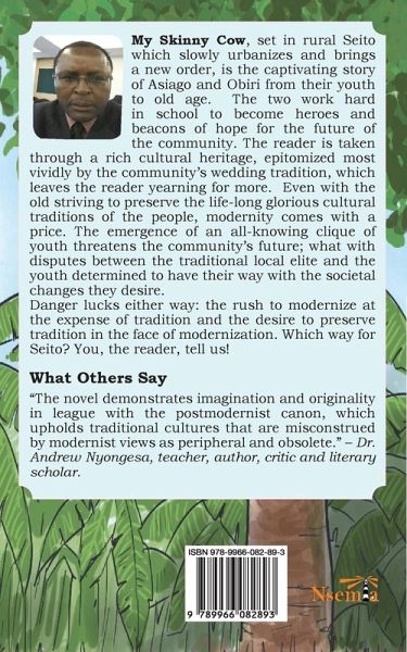 My Skinny Cow, set in rural Seito which slowly urbanizes and brings a new order, is the captivating story of Asiago and Obiri from their youth to old age. The two work hard in school to become heroes and beacons of hope for the future of the community. The reader is taken through a rich cultural heritage, epitomized most vividly by the community's wedding tradition, which leaves the reader yearning for more. Even with the old striving to preserve the lifelong glorious cultural traditions of the people, modernity comes with a price. The emergence of an all-knowing clique of youth threatens the community's future; what with disputes between the traditional local elite and the youth determined to have their way with the societal changes they desire. Danger lucks either way: the rush to modernize at the expense of tradition and the desire to preserve tradition in the face of modernization. Which way for Seito? You, the reader, tell us!