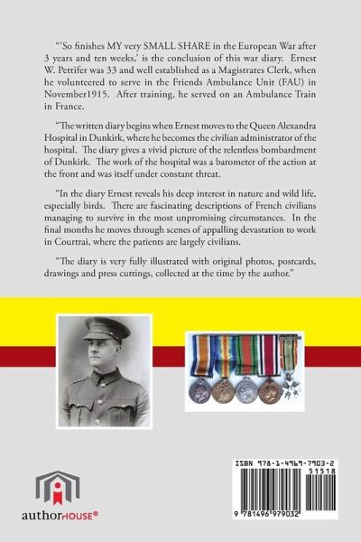 The diary gives a vivid picture of the relentless bombardment of Dunkirk from the air, from the sea and from canons situated behind German lines over 20 miles away. The work of the hospital was a barometer of the action at the front and was itself under constant threat. It was moved to a less vulnerable location in the Spring of 1918, following an emergency night time evacuation after bombing. Shortly after this move, the threat posed by the rapid advance of the German Spring offensive meant that they had to prepare for the possibility of leaving Dunkirk altogether. In the diary Ernest reveals his deep interest in nature and wild life, especially birds. There are fascinating descriptions of French civilians managing to survive in the most unpromising circumstances. Ernest often has responsibility for managing casualties suffering from serious psychological damage. In the final months he moves through scenes of appalling devastation to work in Courtrai, where the patients are largely civilians. The diary is very fully illustrated with original photos, postcards, drawings and press cuttings, collected at the time by the author.