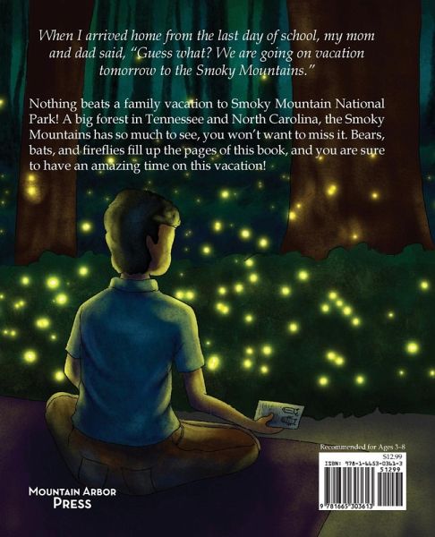 When I arrived home from the last day of school, my mom and dad said, "Guess what? We are going on vacation tomorrow to the Smoky Mountains." Nothing beats a family vacation to Smoky Mountain National Park! A big forest in Tennessee and North Carolina, the Smoky Mountains has so much to see, you won't want to miss it. Bears, bats, and fireflies fill up the pages of this book, and you are sure to have an amazing time on this vacation!