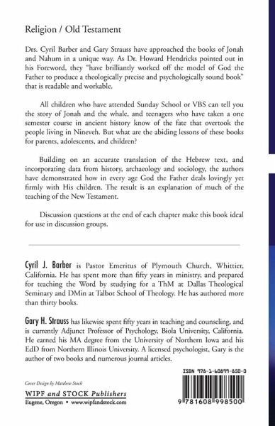 Drs. Cyril Barber and Gary Strauss have approached the books of Jonah and Nahum in a unique way. As Dr. Howard Hendricks pointed out in his Foreword, they ""have brilliantly worked off the model of God the Father to produce a theologically precise and psychologically sound book"" that is readable and workable. All children who have attended Sunday School or VBS can tell you the story of Jonah and the whale, and teenagers who have taken a one semester course in ancient history know of the fate that overtook the people living in Nineveh. But what are the abiding lessons of these books for parents, adolescents, and children? Building on an accurate translation of the Hebrew text, and incorporating data from history, archaeology and sociology, the authors have demonstrated how in every age God the Father deals lovingly yet firmly with His children. The result is an explanation of much of the teaching of the New Testament. Discussion questions at the end of each chapter make this book ideal for use in discussion groups.