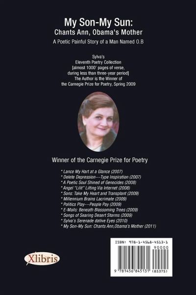 Poetic story of a man no-one expected him to become President especially the white people. Although he has half-black genes, he worked and achieved. I loved a man. He had black skin, His love was tender, serene. From him I gave birth to my Son, My Love My real soulful genes. His father called him Barack (the blessed). I left in pain after blessing him, Teaching . . . how to save innocents' skin. ~~~~~~~~~~~~~~~~~ Dr. Sylva Portoian is the winner of the Carnegie Price for Poetry, 2009