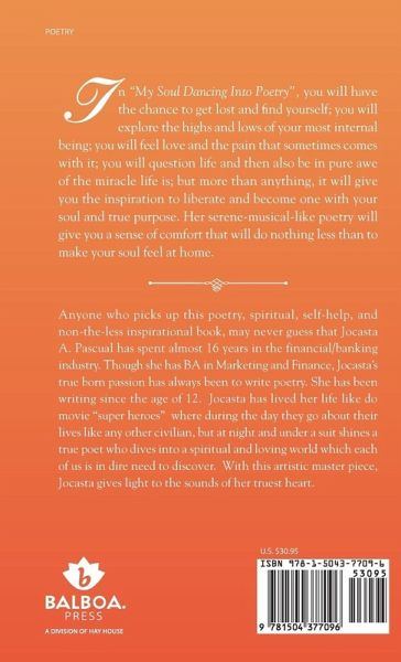 In "My Soul Dancing Into Poetry", you will have the chance to get lost and find yourself; you will explore the highs and lows of your most internal being; you will feel love and the pain that sometimes comes with it; you will question life and then also be in pure awe of the miracle life is; but more than anything, it will give you the inspiration to liberate and become one with your soul and true purpose. Her serene-musical-like poetry will give you a sense of comfort that will do nothing less than to make your soul feel at home.