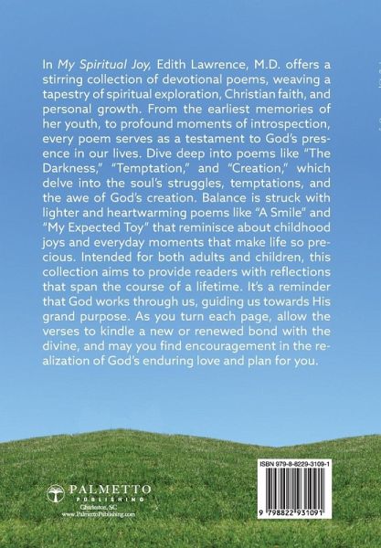 In My Spiritual Joy, Edith Lawrence, M.D. offers a stirring collection of devotional poems, weaving a tapestry of spiritual exploration, Christian faith, and personal growth. From the earliest memories of her youth, to profound moments of introspection, every poem serves as a testament to God's presence in our lives. Dive deep into poems like "The Darkness," "Temptation," and "Creation," which delve into the soul's struggles, temptations, and the awe of God's creation. Balance is struck with lighter and heartwarming poems like "A Smile" and "My Expected Toy" that reminisce about childhood joys and everyday moments that make life so precious. Intended for both adults and children, this collection aims to provide readers with reflections that span the course of a lifetime. It's a reminder that God works through us, guiding us towards His grand purpose. As you turn each page, allow the verses to kindle a new or renewed bond with the Divine, and may you find encouragement in the realization of God's enduring love and plan for you.