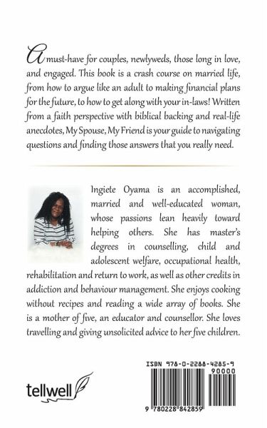 A must-have for couples, newlyweds, those long in love, and engaged. This book is a crash course on married life, from how to argue like an adult to making financial plans for the future, to how to get along with your in-laws! Written from a faith perspective with biblical backing and real-life anecdotes, My Spouse, My Friend is your guide to navigating questions and finding those answers that you really need.