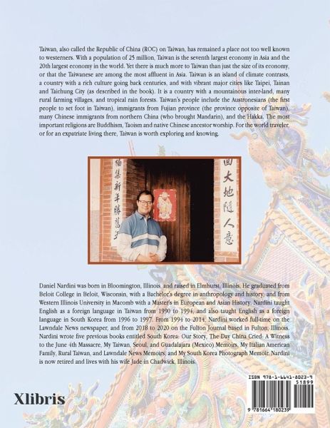 Taiwan, also called the Republic of China (ROC) on Taiwan, has remained a place not too well known to westerners. With a population of 25 million, Taiwan is the seventh largest economy in Asia and the 20th largest economy in the world. Yet there is much more to Taiwan than just the size of its economy, or that the Taiwanese are among the most affluent in Asia. Taiwan is an island of climate contrasts, a country with a rich culture going back centuries, and with vibrant major cities like Taipei, Tainan and Taichung City (as described in the book). It is a country with a mountainous inter-land, many rural farming villages, and tropical rain forests. Taiwan's people include the Austronesians (the first people to set foot in Taiwan), immigrants from Fujian province (the province opposite of Taiwan), many Chinese immigrants from northern China (who brought Mandarin), and the Hakka. The most important religions are Buddhism, Taoism and native Chinese ancestor worship. For the world traveler, or for an expatriate living there, Taiwan is worth exploring and knowing.