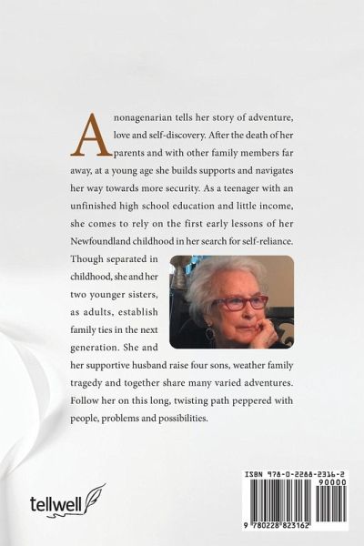 A nonagenarian tells her story of adventure, love and self-discovery. After the death of her parents and with other family members far away, at a young age she builds supports and navigates her way towards more security. As a teenager with an unfinished high school education and little income, she comes to rely on the first early lessons of her Newfoundland childhood in her search for self-reliance. Though separated in childhood, she and her two younger sisters, as adults, establish family ties in the next generation. She and her supportive husband raise four sons, weather family tragedy and together share many varied adventures. Follow her on this long, twisting path peppered with people, problems and possibilities.