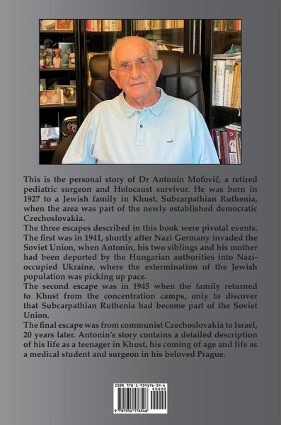 This is the personal story of Dr Antonín Möovi¿, a retired pediatric surgeon and Holocaust survivor. He was born in 1927 to a Jewish family in Khust, Subcarpathian Ruthenia, when the area was part of the newly established democratic Czechoslovakia. The three escapes described in this book were pivotal events. The first was in 1941, shortly after Nazi Germany invaded the Soviet Union, when Antonín, his two siblings and his mother had been deported by the Hungarian authorities into Nazi-occupied Ukraine, where the extermination of the Jewish population was picking up pace. The second escape was in 1945 when the family returned to Khust from the concentration camps, only to discover that Subcarpathian Ruthenia had become part of the Soviet Union. The final escape was from communist Czechoslovakia to Israel, 20 years later. Antonin's story contains a detailed description of his life as a teenager in Khust, his coming of age and life as a medical student and surgeon in his beloved Prague.