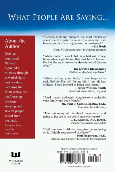 Is there life after death? After a tragic accident, doctors pronounced Richard Sigmund legally dead. Eight hours later, God miraculously brought him back to life on the way to the morgue. During those hours, God allowed him to experience the glorious beauty, heavenly sounds, sweet aromas, and boundless joys of heaven that await every believer. God then returned him back to earth with a mission]]to tell the world what he saw.