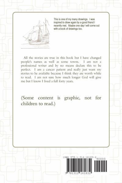 This is a book about my life. There are stories about my childhood all the way up until early 2014. I have stage 4 cancer and also live with Bi Polar disorder. There are some graphic stories about things that have happened to me involving my Bi Polar disorder. I do not talk about all my family members or friends I just use the ones that are directly involved in my tales. (Some content is graphic and this should not be read by children.) All names have been changed as well. It is a short read but should be interesting.