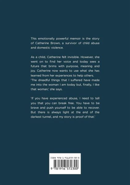 This emotionally powerful memoir is the story of Catherine Brown, a survivor of child abuse and domestic violence. As a child, Catherine felt invisible. However, she went on to find her voice and today sees a future that brims with purpose, meaning and joy. Catherine now wants to use what she learned from her experiences to help others. 'The dreadful things that I suffered have made me into the woman I am today but, finally, I like that woman,' she says. 'If you have experienced abuse, I need to tell you that you can break free. You have to be brave and push yourself to be able to recover. But there is always light at the end of that darkest tunnel, and my story is proof of that.'
