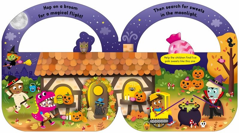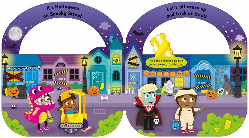 Celebrate Halloween with My Trick-or-Treat Bag, an illustrated board book from Roger Priddy's Carry Along Tab Book series that inspires children to learn about colour, counting and matching through play. The cute bag-shaped format, five shaped tabs with colourful candy on them, engrossing counting game, and bright artwork all add up to a sweet alternative gift for young children at Halloween. They can carry it around, read the story, and enjoy the colour-themed game of seek-and-find by spotting all the candy hidden on a trick or treat adventure in Spooky Street.