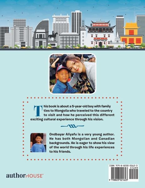 This book is about a 5-year-old boy with family ties to Mongolia who traveled to the country to visit and how he perceived this different exciting cultural experience through his vision.