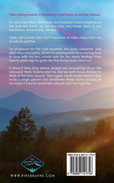 Two aching hearts. A meddling small town. A second chance. It's not a new story. Wife finds out husband's been cheating on her and she packs up her four kids and heads back to her hometown, Sunrise Bay, Alaska. Yeah, not a fresh start, but thousands of miles away from my ex will do just fine. I'm prepared for the cold weather, the early snowfalls, and dark days and nights. What I'm not prepared for is coming face to face with my ex's cousin and for the same feelings from twenty years ago to ignite like the flame never went out. It doesn't take long before people are whispering about the widowed Hank Greene and me. But we both have children to think of this time around. Then again, Hank knows what it's like to be a single parent and sometimes those damn dimples of his make it hard to remember why we can't be together. NOTE: This is a prequel to The Greene Family series and does not have to be read in order to enjoy the series. Series Reading Order: My Beautiful Neighbor, My Almost Ex, My Vegas Groom, My Sister's Flirty Friend, My Unexpected Surprise, My Famous Frenemy, My Scorned Best Friend, My Fake Fiancé, My Brother's Forbidden Friend