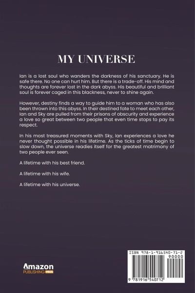 Ian is a lost soul who wanders the darkness of his sanctuary. He is safe there. No one can hurt him. But there is a trade-off. His mind and thoughts are forever lost in the dark abyss. His beautiful and brilliant soul is forever caged in this blackness, never to shine again. However, destiny finds a way to guide him to a woman who has also been thrown into this abyss. In their destined fate to meet each other, Ian and Sky are pulled from their prisons Of obscurity and experience a love so great between two people that even time stops to pay its respect. In his most treasured moments with Sky, Ian experiences a love he never thought possible in his lifetime. As the ticks of time begin to slow down, the universe readies itself for the greatest matrimony of two people ever seen. A lifetime with his best friend. A lifetime with his wife. A lifetime with his universe.