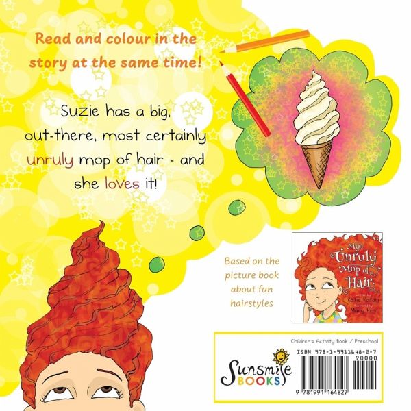 *Read along and colour in the My Unruly Mop of Hair story* Suzie has a big, out-there, most certainly unruly mop of hair - and she loves it! Sometimes Suzie's hair can be swirled up like ice cream, or stuck straight up on end like a porcupine...and more! Have a look and see... My Unruly Mop of Hair Story and Colouring Book is prefect for young readers who also like to colour, and is full of imagination and fun hairstyles! Recommended with colour pencils or crayons. *Collect all the books in the My Fun Hair book series!My Unruly Mop of Hair Mi cabello rebelde My Unruly Hair - Mi cabello rebelde My Amazing Mop of Hair My Incredible Mop of Hair My Spunky Mop of Hair My Unruly Mop of Hair: Story and Colouring Book in-one