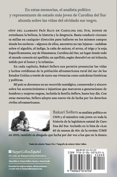 En estas memorias, el analista político y representante de estado más joven de Carolina del Sur ahonda sobre las vidas del olvidado sur negro. «Soy del llamado País Bajo de Carolina del Sur, donde se entrelazan la belleza, la historia y la desgracia. Basta conducir cincuenta millas en cualquier dirección para hallarse en los mismos campos donde los esclavos ?algunos de ellos, ancestros no tan lejanos? sudaban sobre el algodón, el índigo, la caña de azúcar, el arroz, el trigo y la soja. Específicamente, soy de Dinamarca, Carolina del Sur, un lugar donde todo el mundo conocía mi apellido; un apellido, según descubrí en mi infancia, teñido por el honor y la infamia». En cada capítulo, Bakari Sellers nos permite presenciar las vidas y luchas cotidianas de la población afroamericana rural del sur de los Estados Unidos a través de tanto sus vivencias como anécdotas históricas y políticas. Mi país se desvanece es un recorrido nostálgico, conmovedor y sincero sobre los acontecimientos e injusticas que marcaron a generaciones de hombres y mujeres negras, incluida la familia Sellers, hasta hoy día. Con estas memorias, Sellers adopta una nueva vía de lucha por los derechos civiles afroamericanos. Bakari Sellers es analista político en CNN y el miembro más joven en toda la historia de la legislatura estatal de Carolina del Sur. Incluido en la lista de «Los 40 de menos de 40» de la revista Time en 2010, también es abogado que lucha por dar voz a los que no la tienen.