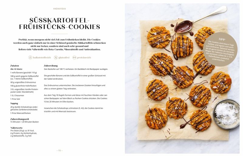 Eine kleine Kritik habe ich jedoch: Die Rezepte werden als gesund beworben, aber der Einsatz von Zucker und Fett ist - nicht überall, aber teilweise - doch recht großzügig. Beispielsweise enthalten manche Rezepte 150g Kokosblüten- oder Rohrzucker sowie 100g Margarine – Mengen, die man nicht als „gesund“ bezeichnen würde. Das ist nicht unbedingt negativ, schließlich handelt es sich um Backwaren, die man ohnehin nicht täglich genießen sollte. Dennoch sollte man sich bewusst sein, dass diese Leckereien eher als Genussmittel und nicht als kalorienarme Alternativen zu verstehen sind. Hier sollte man die Zutaten der Rezepte einfach genau prüfen. Ich habe manche Rezepte auch schon mit weniger Zuckeralternativen gebacken und z.B. Schokolade durch Kakaonibs ersetzt.