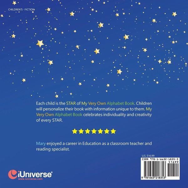 Each child is the STAR of My Very Own Alphabet Book. Children will personalize their book with information unique to them. My Very Own Alphabet Book celebrates individuality and creativity of every STAR.