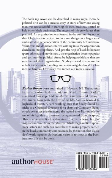The book my vision can be described in many ways. It can be political or it can be a success story. A story of how one young man was unsuccessful in starting his own business, started to help other black businesses. The success of this grew larger than planned. An organization was formed in the community out of this. Organization decided to do more things on a larger scale and started to get cooperation of the community behind them. Volunteers and donations started coming in so the organization decided not to stop there . And gets the help of black billionaire sports athletes and movie stars.…mehr