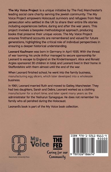 Leonard Kaufmann was born in Germany in April 1935. With the threat of war looming, his uncle Arthur managed to secure sponsorship for Leonard to escape to England on the Kindertransport. Alice and Ronald Argles sponsored 30 children in total, and Leonard lived in their home in Staffordshire with them almost until the end of the war. When Leonard finished school, he went into the family business, manufacturing egg slicers, which later developed into a wholesale business. In 1961, Leonard married Ruth and moved to Gatley, Manchester. They had two daughters, Sarah and Debra. Leonard worked as a clothing manufacturer for a short time and later spent many years as the administrator for the Yeshurun Synagogue. He does not remember his family who all perished during the Holocaust. Leonard's book is part of the My Voice book collection, a stand-alone project of The Fed, the leading Jewish social care charity in Manchester, dedicated to preserving the life stories of Holocaust survivors and refugees from Nazi persecution who settled in the UK. The oral history, which is recorded and transcribed, captures their entire lives from before, during and after the war years. The books are written in the words of the survivor so that future generations can always hear their voice. The My Voice book collection is a valuable resource for Holocaust awareness and education.