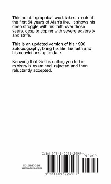 This traces Alan's first 54 years. It is autobiographical and updates the 1990 version. It tells of his fight to retain the love of the Lord Jesus throughout adversity, pain, and self recognition.