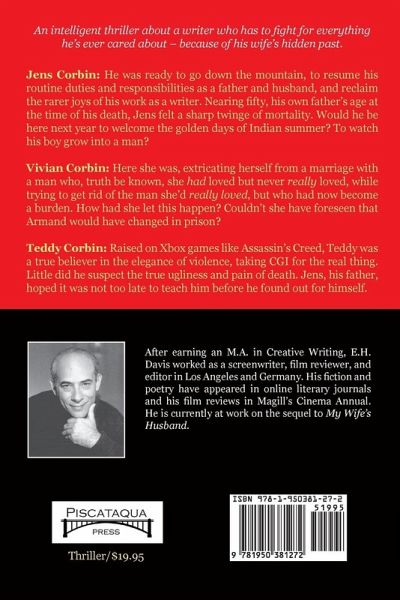 What you don't know about your spouse could kill you. Jens Corbin is a comfortable, successful writer, with a wife and a teenage son. After saving a man from a bear attack in the New Hampshire mountains, Jens decides to step away from his popular but formulaic mystery series to begin a new cycle, featuring a female protagonist devoted to saving kidnapped children. Unbeknownst to him, a convicted murderer has been released from prison after twenty years. A killer who is vengeful, angry. A killer who used to be married to Jens' wife! Writing about killers is one thing, but outwitting them in real life is another. How far would you go to protect your family? An intelligent thriller about a writer who has to fight for everything he's ever cared about -- because of his wife's hidden past.