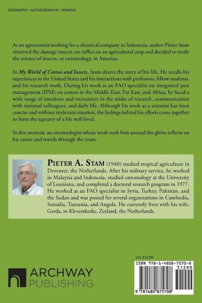 As an agronomist working for a chemical company in Indonesia, author Pieter Stam observed the damage insects can inflict on an agricultural crop and decided to study the science of insects, or entomology, in America. In My World of Cotton and Insects, Stam shares the story of his life. He recalls his experiences in the United States and his interactions with professors, fellow students, and his research work. During his work as an FAO specialist on integrated pest management (IPM) on cotton in the Middle East, Far East, and Africa, he faced a wide range of emotions and encounters in the midst of research, communication with national colleagues, and daily life. Although his work as a scientist has been concise and without irrelevant emotion, the feelings behind his efforts come together to form the tapestry of a life well lived. In this memoir, an entomologist whose work took him around the globe reflects on his career and travels through the years.