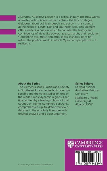 This Element is a critical inquiry into how words animate politics. It offers readers venues in which to consider the history and contingency of ideas like power, race, patriarchy and revolution of Myanmar.