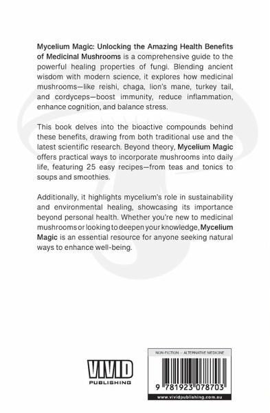 Mycelium Magic: Unlocking the Amazing Health Benefits of Medicinal Mushrooms is a comprehensive guide to the powerful healing properties of fungi. Blending ancient wisdom with modern science, it explores how medicinal mushrooms-like reishi, chaga, lion's mane, turkey tail, and cordyceps-boost immunity, reduce inflammation, enhance cognition, and balance stress. This book delves into the bioactive compounds behind these benefits, drawing from both traditional use and the latest scientific research. Beyond theory, Mycelium Magic offers practical ways to incorporate mushrooms into daily life, featuring 25 easy recipes-from teas and tonics to soups and smoothies. Additionally, it highlights mycelium's role in sustainability and environmental healing, showcasing its importance beyond personal health. Whether you're new to medicinal mushrooms or looking to deepen your knowledge, Mycelium Magic is an essential resource for anyone seeking natural ways to enhance well-being.