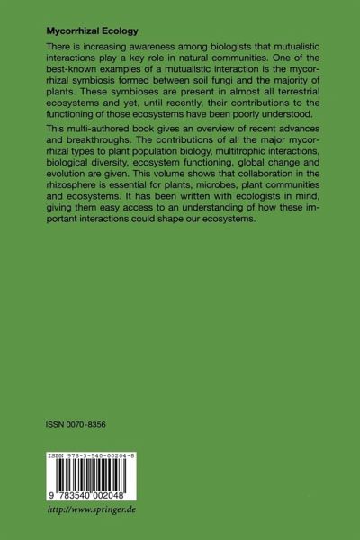 "... a comprehensive and detailed account of ecological mycorrhizal aspects. ... This book at an advanced level on mycorrhizae is intended for a specialist audience of researchers and can be firmly recommended to these colleagues and to academic libraries which cover plant ecology." (Journal of Phytopathology)