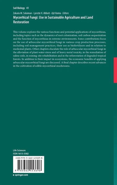 This volume explores the various functions and potential applications of mycorrhizas, including topics such as the dynamics of root colonization, soil carbon sequestration and the function of mycorrhizas in extreme environments. Some contributions focus on the use of arbuscular mycorrhizal fungi in various crop production processes, including soil management practices, their use as biofertilizers and in relation to medicinal plants. Other chapters elucidate the role of arbuscular mycorrhizal fungi in the alleviation of plant water stress and of heavy metal toxicity, in the remediation of saline soils, in mining-site rehabilitation and in the reforestation of degraded tropical forests. In addition to their impact in ecosystems, the economic benefits of applying arbuscular mycorrhizal fungi are discussed. A final chapter describes recent advances in the cultivation of edible mycorrhizal mushrooms.