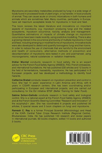 The book reviews the latest literature and innovations on important aspects of mycotoxins, e.g. mycotoxin producing fungi and the related ecosystems, mycotoxin occurrence, toxicity, analysis and management. Quantitative estimations of impacts of climate change on mycotoxin occurrence have been made recently, using predictive modelling.