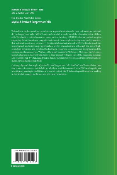 Cutting-edge and thorough, Myeloid-Derived Suppressor Cells: Methods and Protocols is a valuable resource for novices in this field to help them start their research on MDSC, and experienced investigators looking to establish new protocols in their lab. This book is great for anyone working in the field of biology, medicine, and veterinary medicine.