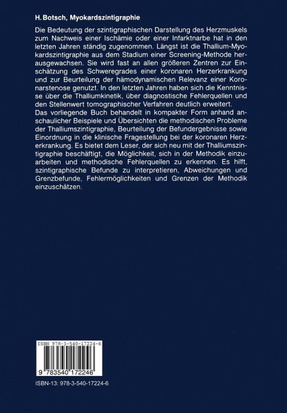 Die Bedeutung der szintigraphischen Darstellung des Herzmuskels zum Nachweis einer Ischämie oder einer Infektnarbe hat in den letzten Jahren ständig zugenommen. Längst ist die Thallium-Myokardszintigraphie aus dem Stadium einer Screening-Methode herausgewachsen. Sie wird fast an allen größeren Zentren zur Einschätzung des Schweregrades einer koronaren Herzerkrankung und zur Beurteilung der hämodynamischen Relevanz einer Koronarstenose genutzt. In den letzten Jahren haben sich die Kenntnisse über die Thalliumkinetik, über diagnostische Fehlerquellen und den Stellenwert tomographischer Verfahren deutlich erweitert. Das vorliegende Buch behandelt in kompakter Form anhand anschaulicher Beispiele und Übersichten die methodischen Probleme der Thalliumszintigraphie, die Beurteilung der Befundergebnisse sowie die Einordnung in die klinische Fragestellung bei der koronaren Herzerkrankung. Es bietet dem Leser, der sich neu mit der Thalliumszintigraphie beschäftigt, die Möglichkeit, sich inder Methodik einzuarbeiten und methodische Fehlerquellen zu erkennen. Es hilft, szintigraphische Befunde zu interpretieren, Abweichungen und Grenzbefunde, Fehlermöglichkeiten und Grenzen der Methodik einzuschätzen.